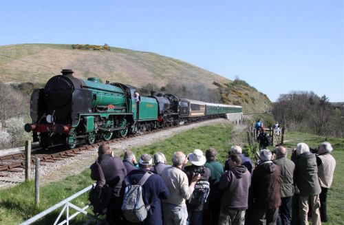 BRITANNIA 70000 BR STANDARD CLASS 7 LOCO ARRIVES IN SWANAGE TO STAR IN SPRING STEAM GALA
