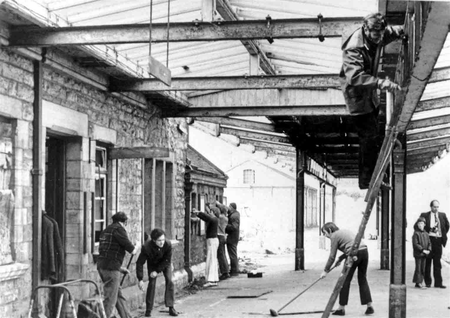 Jeremy Weller remembered: “My memory of the first day of restoration work at Swanage station was completing envelopes for a campaigning newsletter in the derelict parcels office – where the shop is now – and sweeping the platform.